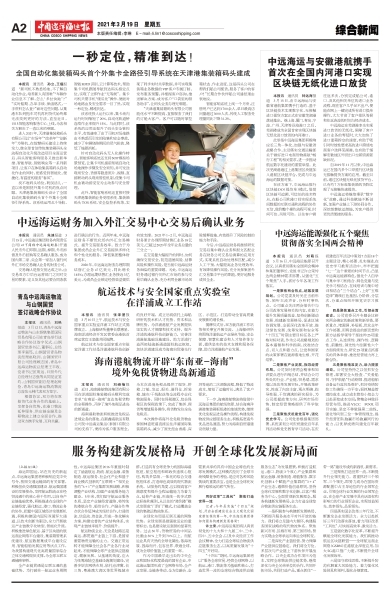 中远海运与安徽港航携手首次在全国内河港口实现区块链无纸化进...