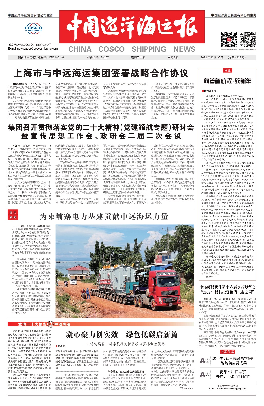 中远海能获评第十六届水晶球奖之“2022年最具投资价值上市...