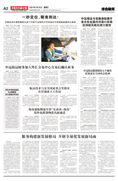 外媒报道 3月18日,《中国交通报》第7447期1版刊登了海贸国际海事“2020年航运终身成就奖”获得者——中远海运集团董事长、党组书记许立荣的专访,以下为报道全文。 近日,由英国英富曼集团与我国上海国际港务(集团)联合举办的海贸(Seatrade)国际海事“2020年终身成就奖”颁奖仪式在上海举行,中远海运集团董事长许立荣荣获海贸国际海事“2020年航运终身成就奖”。 海贸国际海事奖始于1989年英国伦敦,被誉为“航运界奥斯卡”,是目前全球航运界规格最高、最具世界影响力的海事航运大奖之一。本次颁布的“航运终身成就奖”旨在表彰对全球航运和海运业作出重大和持续贡献的杰出人物,是海贸国际海事奖中分量极重的个人奖项。 许立荣一直致力于探索国际航运物流合作的新通道,致力于推动中国参与全球化进程,为推动构建全球航运业新生态和数字化转型作出了卓越贡献,特别是在2020年应对新冠肺炎疫情中,更是凸显了他在促进国际航运发挥重要基础保障作用中的关键地位。日前,本报记者专访了许立荣。 国际海运业协作共赢 保障产业链供应链稳定 记者:您对获得海贸国际海事“2020年航运终身成就奖”有何感想? 许立荣:该奖不仅是对我个人,更重要的是对中远海运集团的肯定和认可。航运为世界经济的繁荣稳定发挥着重要的保障作用,为全人类的文明发展作出了突出贡献。此次颁奖,将进一步激励更多年轻人立志航海事业,为航运业和人类发展作出新的贡献。 去年以来,面对全球肆虐的新冠肺炎疫情,包括中远海运集团在内的国际海运业,协作共赢,克服种种困难,努力保障了全球贸易,保障了产业链、供应链稳定。未来,国际航运业一定能够继续乘风破浪,为经济全球化建设贡献更大的力量。 记者:您领导的中远集团和中海集团整合,缔造了全球最大的航运企业,对全球东西方航运发展格局产生了重大影响。去年,在新冠肺炎疫情暴发的挑战下,中远海运集团的业绩如何? 许立荣:重组以来,中远海运集团不断发展壮大,即使面对百年一遇的疫情和历史罕有的经济衰退,也取得超预期的业绩。5年来,集团营业收入年均增长8.3%,资产由重组前的5930亿元增至目前的8553亿元,增幅44%;净资产收益率为7.2%,居行业领先地位,实现了历史性跨越发展;年度货运量突破13亿吨,较重组前增长53.8%,用全球十八分之一的运力承运了全球十分之一的海运贸易量;通过优化产业布局推动结构调整,实现了以航运为核心的产业链发展,非周期性资产占总资产比重为52%;境外资产占总资产比重为57%,境外收入占比为59%,境外利润占比为52%。 发挥综合性航运物流企业优势 为全球互联互通铺路架桥 记者:您一直致力于探索国际航运物流合作的新通道,《国家综合立体交通网规划纲要》提出完善面向全球的运输网络。您认为航运业应如何助力构建现代化高质量国家综合立体交通网、加快建设交通强国? 许立荣:2021年2月8日,中共中央、国务院印发了《国家综合立体交通网规划纲要》,这是继2019年9月发布《交通强国建设纲要》之后,以习近平同志为核心的党中央对交通运输作出的又一重大战略部署,对在新发展阶段开启加快建设交通强国新征程具有里程碑意义。两份文件共同构成了加快建设交通强国的顶层设计。 交通运输部积极落实新发展理念,紧扣高质量发展,把握畅通经济循环这个关键,深化交通运输供给侧结构性改革,有序推动交通运输基础设施智能化、数字化改造,加快交通新基建、新业态、新模式发展,服务构建新发展格局,加快建设交通强国,为全面建设社会主义现代化国家当好先行,取得了积极成效。“十三五”期间,我国交通基础设施加快发展,运输服务水平不断提升,为决战决胜脱贫攻坚、全面建成小康社会提供了有力支撑。 海运即国运,站在历史的新起点,中远海运集团将积极响应党中央号令,按照交通运输部的有关部署,积极担负交通强国建设、航运强国建设的发展使命,发挥航运物流业在经贸流通中的核心骨干作用,以自身产业链基础优势,积极推进在全球的产业链经营,强化航运、港口、物流业务的协作,把握中国区域经济发展新机遇,积极构建国内国际双循环大通道,以技术创新为驱动,全力开展航运产业链数字化转型、智能化升级,积极推进绿色航运、基于区块链的航运商业网络平台建设、集装箱管理系统建设、航运数据集成平台建设应用、智能船舶发展应用等试点工作,为我国构建现代化高质量国家综合立体交通网提供支撑,为全球互联互通铺路架桥。 全产业链贯通是互联互通的基础优势。为打破单一航运业务周期性,中远海运集团2016年重组时制定了涵盖航运、物流、航运金融、装备制造、航运服务、社会化产业和基于商业模式创新的“互联网+”相关业务的“6+1”产业集群发展战略,积极调整产业结构,加强产业链服务能力建设。5年来,我们坚守航运业服务本质,坚定产业链经营道路,将传统的港航合作、船货合作、产融合作等点状合作延伸成为线状合作,打通货流、信息流、资金流,形成一体化解决方案,构建完善的产业结构体系,实现产业链效率提升、价值提升。 航运物流企业,无论是陆路还是海运,都贯通产业链上下游,是国家重要物资运输的主力。交通正常运转才能保障全社会各产业各行业动起来,才能保障全球产业链供应链稳定、健康发展。从基建的角度,