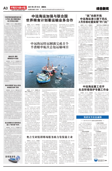 本报讯 通讯员 孙修海报道 3月12日,中远海运重工召开2021年生态环境保护专题工作会。公司董事长、总经理梁岩峰,党委书记李懿文,副总经理严承祥、陈弓等出席会议。公司所属8家主力造修企业负责人作企业生态环保工作交流发言,公司安监部就行业生态环境保护工作调研情况和重工环保工作重点与对策作了专题汇报。 此次会议是中远海运重工成立以来召开的首次全系统生态环保工作专题会议。梁岩峰从“坚持绿色发展理念,以‘四个着力’,推进生态环保工作”“提升绿色发展能力,从‘三个相结合’,推进企业可持续发展”“坚持行业领先目标不动摇,在三个方面走在行业前列,打造绿色发展品牌”等三个纬度全面部署了公司未来生态环境保护工作。他强调,中远海运重工要坚定生态环保工作行业领先目标不动摇,并从领导认识到位、依法合规底线、组织架构健全、管控体系完善、数据完整准确、科技研发引领、投入成本合理、统筹综合应对、措施适度超前等九个方面提出了具体工作要求。 |