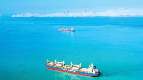 近日,中远海运散运清平山轮和清云山轮相遇在秘鲁卡亚俄港锚地,在异国他乡一起迎接“五一”国际劳动节的到来,齐心协力奋战在全球物资运输供应链上,助力货畅其流。