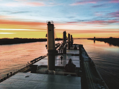 海员天地海上风 巴西东北港口ITAQUI锚地,好动的云朵接连数日,每日数次,随机将滂沱大雨送至甲板,又很快游弋而去。祖国江南梅雨绵长悠悠,滋养了水乡的温婉与优雅;而巴西雨季的肆意而随性,则渲染出亚马逊的豪放与野性。 我在云龙峰轮的第365天与我在地球的第44个365天,随着充沛的雨水不期而遇,如此巧合,且悄无声息。其实,22个同船弟兄是非常清晰记得这个值得纪念的数字的。去年的这一天,众人白衣执甲,逆向而行,沿着欧亚大陆的黄金分割线从首都机场飞向法兰克福,历时11个多小时,横跨6个时区,而后转机至汉堡,在易北河畔登上云龙峰轮。这一天便成了一年来脚底与陆地的最后“告别”。 交叉交界似乎与我结缘,这一次是分割欧亚两大洲,连通地中海与黑海的水上航道。出入黑海的船员享受着土耳其海峡免费而独特的观赏视角,这份福利是弥足珍贵的。深秋傍晚,天红水蓝,自然风光与建筑群落相映成趣。水面上,船只拖着长短不一的白尾,大大小小,形形色色,南来北往,东穿西行,川流不息,恰似夜空追逐嬉戏的流星。放眼海峡两岸,白色镶嵌在绿色里,红色飘扬在半空中。红顶白墙的民居依山而建,翠绿掩映其里,白色张扬其外,好一幅屋在林中生、林在家中长的优美画卷。高楼大厦外墙、山间别墅道旁,山坳里、广场上、塔尖顶、桥梁下,星月旗横着的、竖着的、挂着的、绷着的、刻着的、画着的,以其强势姿态夺走你的眼球。顶圆尖高体阔的清真寺总在显要处出现,巨型圆柱体碉堡耸立在现代建筑之中。夜幕徐降,从二十余米高的顶层甲板俯视周围,不少游艇在顶部拉着霓虹灯、架起烧烤摊、接上大音响,热歌辣舞一浪盖过一浪。绯红的天空终于坚持不住,山脊的线条悄然隐去,月亮渐渐从山坳里探出脑袋,爬上远处塔顶的针尖,以其突兀的比例悬在天空,轮廓清晰,色泽清莹,纹理清爽,“广寒宫”近在咫尺,有种强烈的“白玉盘”复古印象,我终于解开了边塞诗人普遍借月起兴之惑,真是风月无古今呐。 水道最窄处的博斯普鲁斯大桥是世界第四大悬索桥,连接着亚欧两大洲,故又名欧亚大桥,远远眺去,犹如巨龙横卧,蔚为壮观。行驶在桥面的车辆偶或轻声鸣笛,向流连桥下的各国游客送达美好祝福和祈愿。随着土耳其社会经济的发展,一座大桥已经不能满足人们的需要,于是在南北两端各增建一座,风格相同,但更长更宽更雄伟,如同老式长衫的三粒布扣,将两岸人民不紧不松连在一起。 靠泊乌克兰尼古拉耶夫,瞧见岸上的带缆工人穿着统一灰布衣服,有的瘦骨嶙峋,有的眼神发直,不禁让我冒出一种无上自豪加无比伤怀的复杂情绪。自豪的是,生在大中国,虽然目前面临诸多挑战与瓶颈、曲折与艰难,但中国式现代化之路越走越宽广;伤怀的是,曾经作为世界超级大国一部分的这个国度,因为听信西方所谓民主自由的忽悠,放弃了民族前途,可结果呢……进港时看到废弃的船坞里躺着冷战期间建造至半的军舰残体,锈迹斑斑,杂草丛生,已然成了雀鼠天堂。岸边耷拉着枯枝的几棵杂树,高出残体数米,盛夏季节却枝叶稀少而败缺,高大的树干和低垂的树梢印证着历史,向世人诉说着沧桑。而今,俄乌战事未平,数十艘巨轮被困,数百万吨粮食无法卸驳,世界粮食供应危机和金融乱象像低气压团一样再次弥漫在海陆上空。忽然间,一丝惆怅飘然而至,浑身燥热而抑郁,或来自夏日,或涌自心间。 穿过爱琴海一路向南,船舶便在埃及塞得港锚地依次等候编队,随着当局交管一声放行令,大副和木匠在船头稳稳收起锚爪。在苏伊士运河航道北入口处,水手长熟练地将两艘紧随而来的带缆艇妥妥地悬在两侧加油吊上,几名当地带缆工人也随艇踏上我轮。船艏两侧平静的海水温柔地让开,窄窄的水带蜿蜒远去,这方湛蓝的丝巾仿佛是献给沙漠深处璀璨金字塔的永恒,也将亚非两岸友好地分开。金黄的河滩张开双臂向我们款款迎来,靠苏伊士省会的一侧偶有房屋,大多低矮,就像光秃秃的河滩一样并无生机。行至半途,水面变宽,沙洲上雕刻着一排排阿拉伯文,字体微微凸起,黄底黄字,原汁原味,并不显眼,保持着对自然的敬畏。有水无草,应该是苏伊士运河的奇异之景。河边的金黄,或高或低,或平或缓,几处低洼之处现出浅水汪汪,亦无荫无绿,旁边停放的数辆作业机械,也是一色的黄,与周围环境浑然一体。船长赵勇始终坚守驾驶台,目光如炬,紧盯着狭窄的航道和前后船只状况,不时提醒大家保持人员和机器状态,前年长赐轮因搁浅运河而引发全球航运市场波动,足见苏伊士运河之重要性。 出得红海,船向朝东进入亚丁湾,在此等候的我海军长沙舰及时将我轮揽入安全的怀抱,始终警惕地守在周围,我们顿觉暖意遍布全身,胸中满是踏实与安宁。恰逢建军佳节,赵船长用高频热情地向长沙舰官兵表达节日的祝福和敬意,感谢他们为世界和平和祖国安宁作出的贡献。深夜的天空显得特别高,星辰却显得异常近,银河星团如薄纱、如棉球,漂浮在黑幕里,众多星座也斑驳可数。我与值防弟兄驻守驾驶台两翼,腰挎高频,手持照明,偶尔欣赏星罗棋布的夜幕。沿着船舷向远眺去,夜幕下海水零星地将月球的反射波再次回传眼帘。隐隐约约,我惊奇地发现船头两侧的波浪泛着微弱蓝光,如巨型伞状铺列在船头的海面,顺着船头指向前方,视线再从船头收回,舷边也用弱弱的光带清晰地勾勒出舷与水的界线,将船体从海面抠出,如