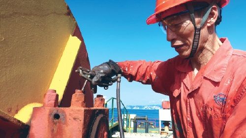 为了以最佳状态迎接2023年的到来,近日中海康和轮组织船员对船舶的船容船貌进行全面整治。图为船员正在对绞缆机进行维修保养。(庄仅元)
