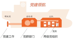 工作思考 如何发挥理论对实践的指导作用,把握好习近平新时代中国特色社会主义思想的世界观和方法论,坚持好、运用好贯穿其中的立场观点方法,创新党建工作的理念、方法,进一步提高党建工作实效,是摆在广大党务工作者面前的重要课题。本文从中远海运重工——一家以船舶和海洋工程装备建造、修理改装及配套服务为一体的大型重工国有企业改革发展和党的建设工作的实际出发,提出运用系统观念构建“大党建”工作格局的基本原则,综合企业党建工作任务目标、责任落实、作用发挥、保障机制等要素内容,探索构建系统集成、资源共享、同向发力的多维立体“大党建”工作格局的思路和方法,为高质量党建引领企业高质量发展提供有力支撑。 运用系统观念构建“大党建”工作格局的基本原则和总体思路 构建“大党建”工作格局是新时代加强党对国有企业领导的战略部署,是提高国有企业党建工作质量的实践需要,也是优化党建工作体制机制的内在动力。 “大党建”工作格局是一个系统体系,不是一蹴而就的,而是与时俱进、动态发展、持续完善的,重点要把握好“三个结合”的基本原则。 理论引导和工作指导相结合。系统化的“大党建”工作格局是战略思维和战术指导的相互融合,是“道”和“术”的全面阐释。既要有理论的支撑和引导,也要有具体工作的部署和落实。既要对党建工作“是什么”“干什么”作出全面科学的概括和系统总结,也要在党建工作“怎么干”上提出具体的实用的指导意见,做到相得益彰、浑然一体。 顶层设计与实践探索相结合。系统化的“大党建”工作格局建设需要顶层设计和基层探索的良性互动、有机结合,更好地激发自上而下与自下而上两种动力。在顶层设计上建立科学严谨的管理制度和操作规范,形成清晰完整的全流程党建链条,充分发挥基层组织的智慧,将成功实践纳入体系并迅速推广。 明确责任与考核评价相结合。要用好“大党建”考核这个指挥棒,坚持从改革发展大局考量党建工作,坚持用企业改革发展成果作为检验党组织工作成效的重要标尺,把解决党建和业务“两张皮”问题作为重点,把考核范围延伸至基层党支部和党员,把考核结果纳入综合绩效考核范畴,与领导人员调薪、晋升、评优等直接挂钩,形成有力的倒逼机制,切实通过考核联动推动党的建设与改革发展深度融合。 明白了基本原则,那应该从哪里入手,运用系统观念构建“大党建”工作格局呢?这里不妨从系统工程角度,以螺旋桨带动船舶航行的原理作比方打开思路。 燃油在主机气缸里燃烧,迸发出动力,通过齿轮箱输出给螺旋桨,螺旋桨旋转进而带动船舶航行。对照上图1,船舶在党建领航“舵手”的方向把握下,船舶发动机就是两级党组织,各个气缸就是各个基层党支部,燃油代表广大党员的智慧和力量,各党群工作部门就像是齿轮箱,轴承是连接各处的大党建工作机制,通过动力传输系统,党建工作效能转化为推动船舶航行的螺旋桨。通过燃油在大气缸内做功,党员活力迸发,使得主机产生动力,党群部门这个“齿轮箱”通过“轴承”的工作机制把动力转为合力,输送给螺旋桨。燃油烧得越猛烈,动力越足,螺旋桨的快推力越强,船舶跑得就越快。即党组织、党员作用发挥的合力越足,党建工作就做得越好,进而起到“党建领航”的作用。 运用系统观念构建“大党建”工作格局的总体思路就是,紧紧围绕企业价值创造这个中心,有机整合党的政治、思想、组织、作风、制度、廉政、工团等各方面资源,将党建工作融入企业生产经营、改革发展稳定等各个领域,促进党建信息、党建成果在各个层级共享运用,把党组(党委)领导力、支部战斗力、党员干部执行力以及群团组织的凝聚力汇聚成党建合力,构建全方位、全过程和全覆盖的多维立体“大党建”工作格局,引领企业高质量发展(如图2)。 运用系统观念构建“大党建”工作格局的方法 (一)在运行机制上,建立“五个统一”全面贯通的党建工作体系,实现从“小党建”向“大党建”转变 要坚持贯彻落实两个“一以贯之”“四同步四对接”要求,运用管理循环理念,按照党建工作“统一设定计划目标”“统一组织实施”“统一年度考核”“统一问题整改”“统一人员培训”建立全面贯通的党建工作体系,让“大党建”构建工作形成闭环(如图3)。 一是统一设定计划目标。党建工作责任制是管党治党的有效方法。每年年初,企业一级单位党组织需召开党建工作会,与二级党组织签订党建工作责任书,二级单位党组织也需要与再下一级单位党组织签订目标任务书。结合年度重点工作任务,把各级党建目标适当量化,年中和年底联合组织开展全系统党建工作专项检查、现场考核。明确各级党组织、党建职能部门和党建工作人员的职责,形成党组织抓、书记抓、党建人员一起抓,一级抓一级,层层抓落实的责任机制。二是统一组织实施。如构建多维立体“大党建”工作格局立体模型所示,党群部门在整个组织过程中要贯穿始终,起到监督、服务、指导、沟通的作用。各级党群部门要打破“自扫门前雪”的常规,强化大局观念和整体意识。三是统一年度考核。不断完善各基层党组织党建工作考核标准,探索党委书记抓党建工作与生产经营、干部管理、党风廉政等一体考核评价机制,运用“互联网+现场考