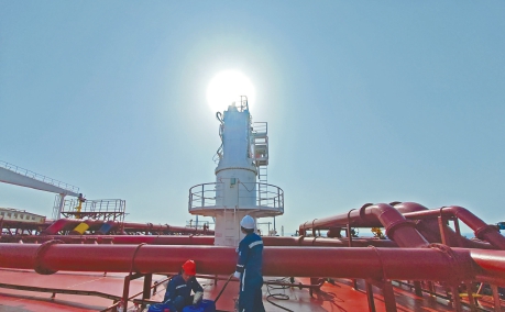 7月28日,中远海运能源所属远洋湖轮靠港前夕,为保障船舶安全生产和货物装卸顺利进行,由机舱部党员和入党积极分子组成的应急维修保养小组顶着烈日,对关键设备克令吊进行加油活络作业。抢修中,党员带头、骨干跟进,顶着烈日,仅用两小时便完成全部维护,确保船舶按期靠泊。