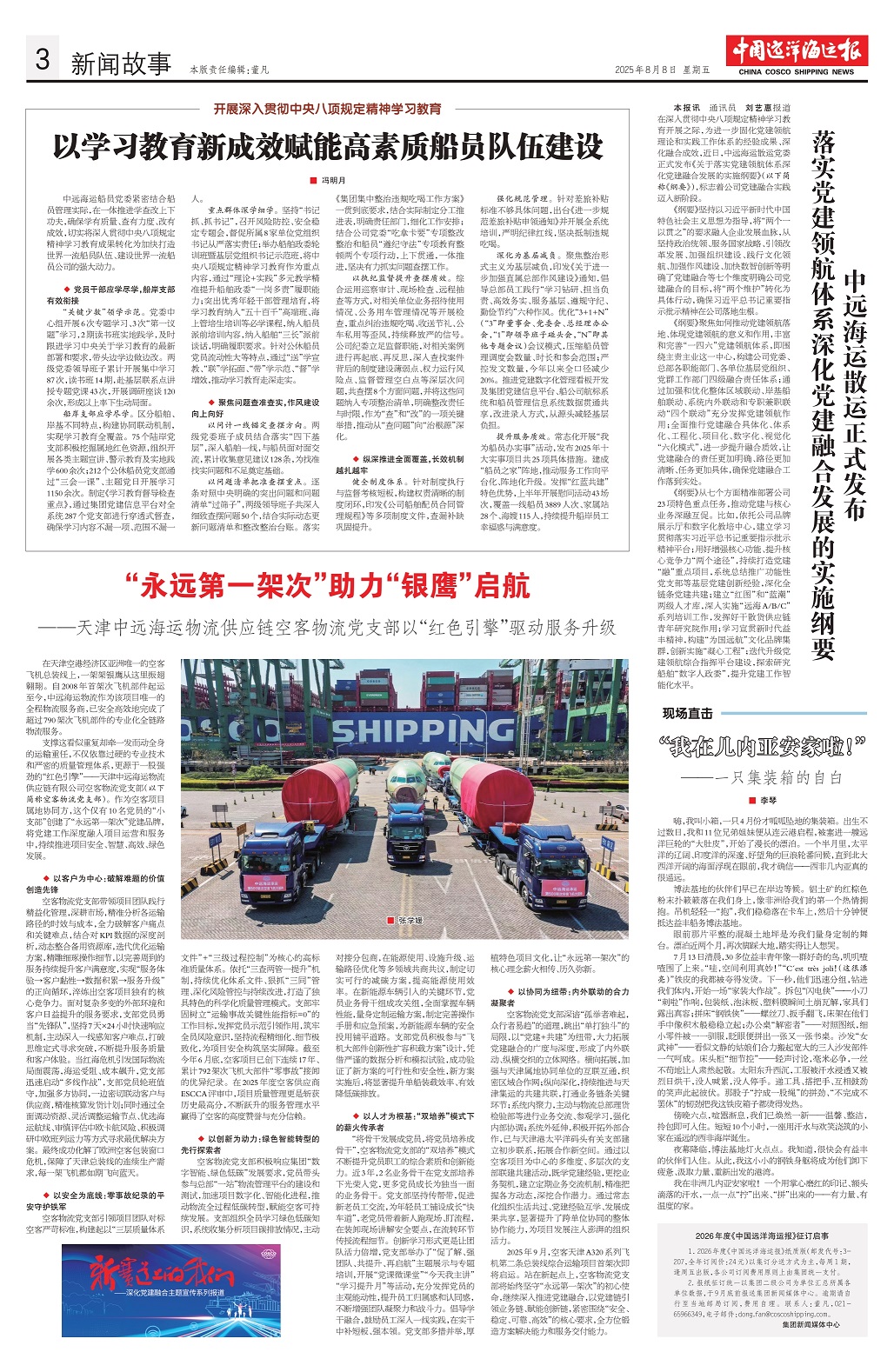 中远海运散运正式发布落实党建领航体系深化党建融合发展的实施...