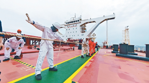 8月3日下午,航行在印度洋的中远海运“新连洋”轮甲板上人声鼎沸,一场由船舶党支部和工会联合举办的拔河赛开始了。船员们抽签分成A、B、C、D四组,人人身着工装、脚蹬防滑鞋,在甲板上展开力量与意志的较量。随着一声哨响,长绳瞬间绷直,红线在中线附近来回拉锯,呐喊声与海浪声交织。经过三轮角逐,由大副刘奂添、大管轮姚朝良领衔的C组夺得冠军,欢笑与热情洒满了甲板。