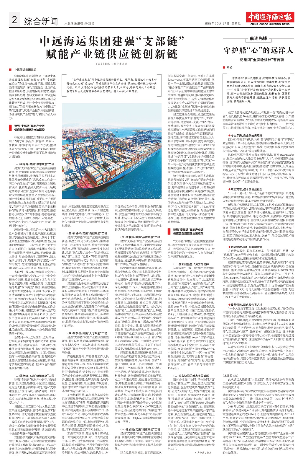 中远海运集团建强“支部链”赋能产业链供应链创新链(附图片)