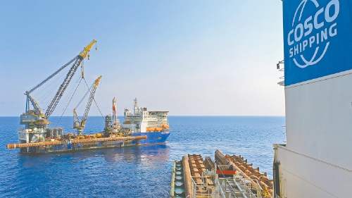图片新闻 本报讯 通讯员 刘志恒、杨晨、孙法融报道 10月31日,澳大利亚西部海域,壳牌某油田项目迎来关键节点,随着最后一件货物安全卸离甲板,中远海运特运“祥安口”轮顺利完成双船动力定位协同作业。 双船动力定位卸货是指半潜船“祥安口”轮与浮吊船在不抛锚、不带缆状态下,依托各自动力定位系统保持稳定相对位置,协同完成大型吊卸作业。由于两船须共同应对风、浪、流等复杂海况,而且间距必须始终控制在10米左右,因此对船舶操控与协同配合要求极高,宛如大船在海上跳起“双人舞”。 此次成功作业是中远海运特运海上直接交付货物模式的一次全新尝试,可有效降低运输与安装成本,更好地服务海上风电和油气项目需求。