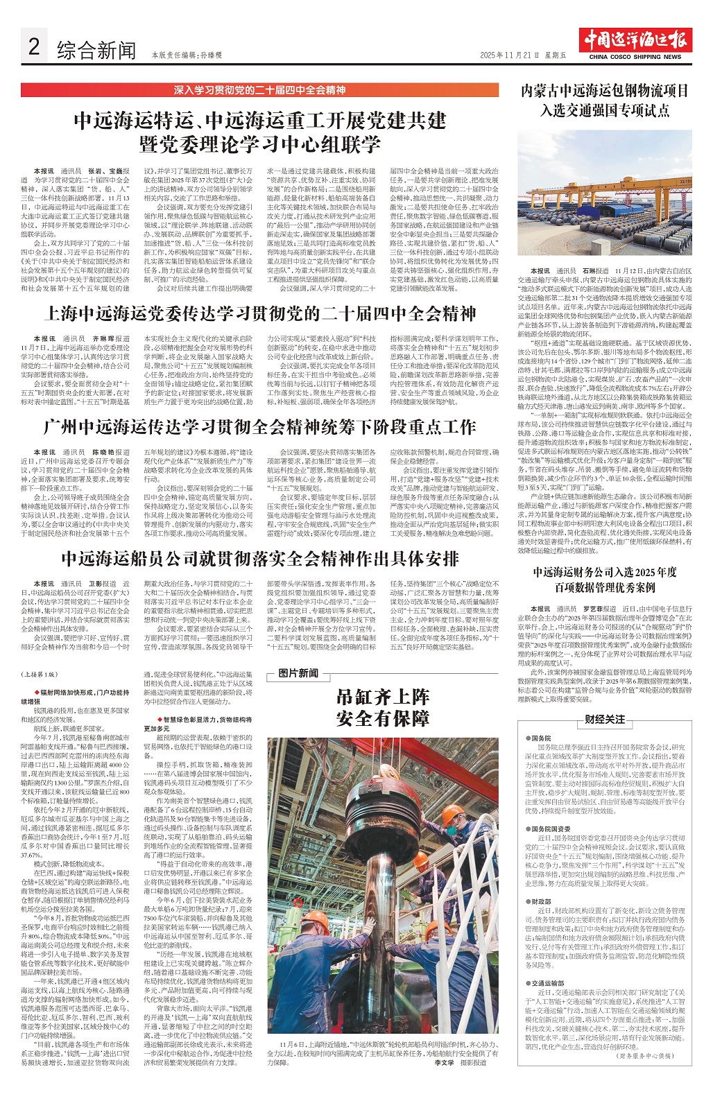 广州中远海运传达学习贯彻全会精神统筹下阶段重点工作