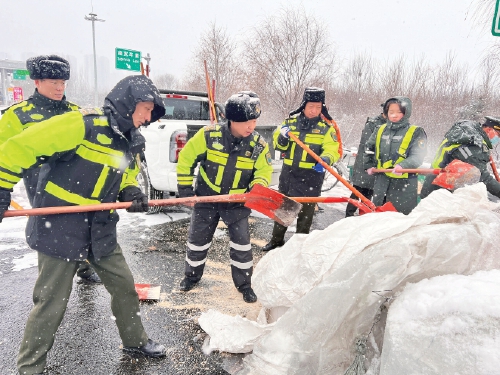 一线写生 近日,新一轮强降温、大风、雨雪、冰冻天气影响我国大部分地区。面对雪情考验,香港中远海运所属河北京石、齐鲁高速立即启动除雪保畅应急预案,全力保障道路安全畅通,用心服务司乘人员,在风雪中筑起一道温暖而坚实的出行防线。 河北京石所属涿州收费站坚持“路封服务不封”,组织人员全力清雪,为开通创造条件;主动开展便民服务,为司乘提供热水、泡面、充电、咨询等帮助,将收费站变为“温情驿站”;与健康城收费站联动开展路况直播,累计观看超6万人次。保定收费站在风雪突至后,开动除雪机迅速开辟出安全通道,值班人员在关键区域撒布融雪剂,人工清理边角缝隙,严防结冰。所属高碑店、定兴、徐水东、保定南等收费站值班人员顶风冒雪,对车道、广场积雪结冰进行集中清理。各收费站还利用电子屏发布提示、备足便民物资,确保车辆通行有序。 齐鲁高速迅速开展“清底”作业,重点对桥面、坡道、匝道等部位加强处置。除雪机械和工作人员紧密配合,按照“梯队推进、循环清理”的方式实现雪随下随清、清后及时运。各监控中心全程跟踪路面实况,通过可变情报板、交通广播等及时发布通行信息,引导车辆安全有序通行。 (向远) 高碑店收费站值班人员顶风冒雪,手持铁锹、雪铲等工具,集中清理车道、广场积雪结冰,全力保障站口安全畅通。 张然 摄影 |