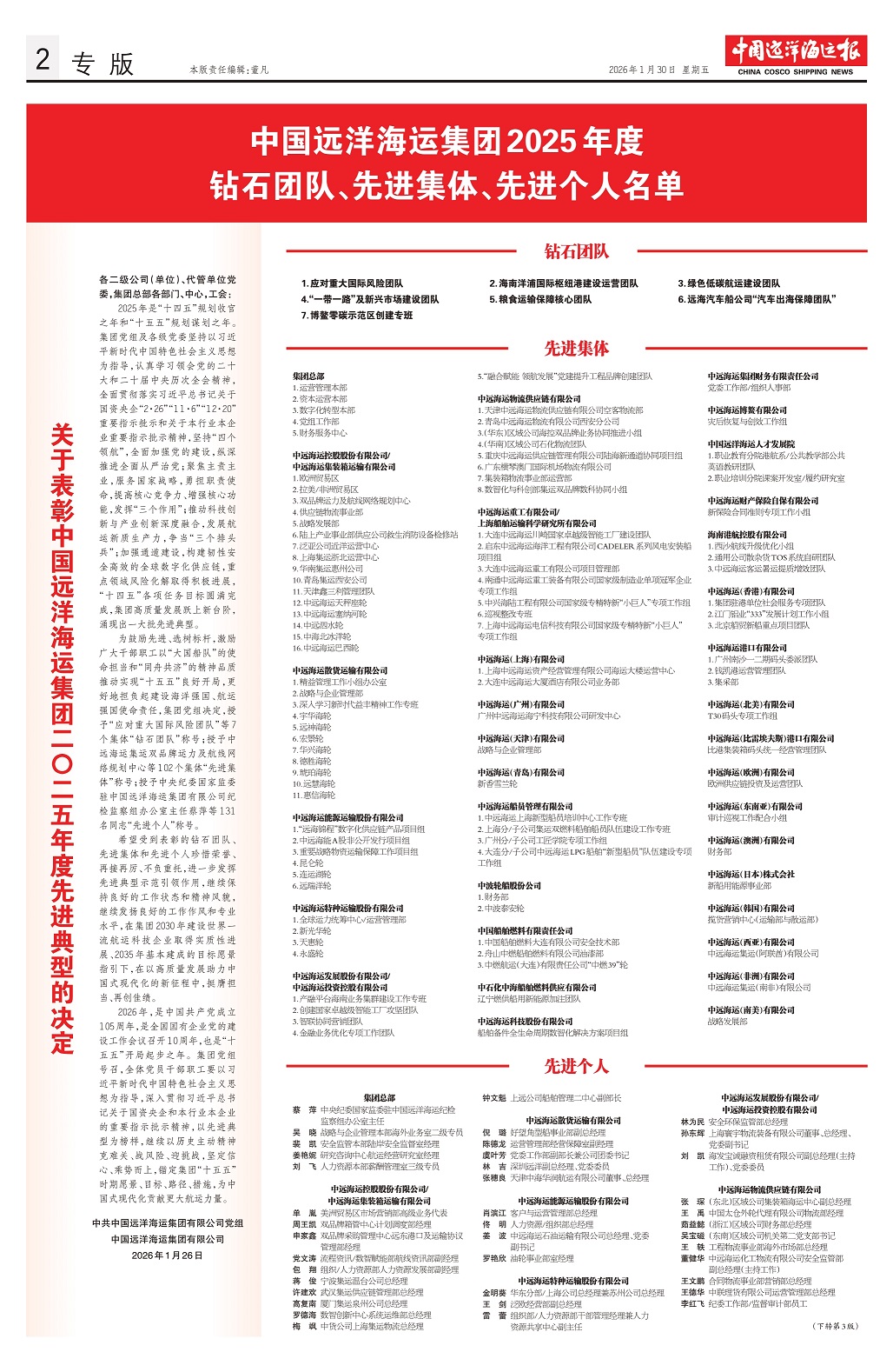 | 中国远洋海运集团2025年度钻石团队、先进集体、先进个人名单 |